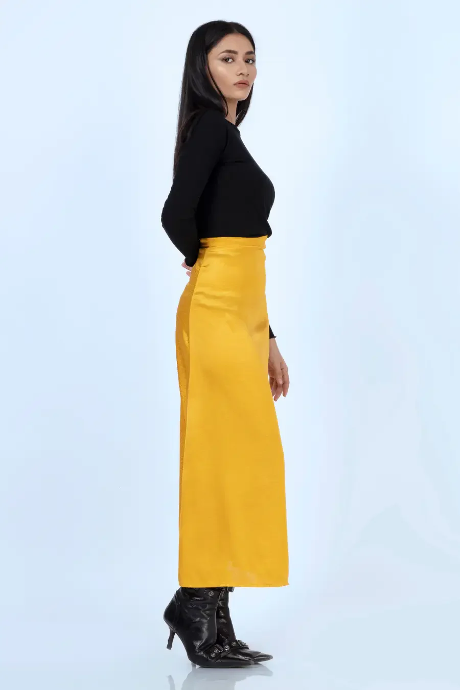 The A-line skirt is a timeless piece that flatters the waist and hips, gently flaring out to create a graceful line. Its simple waistband sits neatly at the waist, providing a clean and polished look.