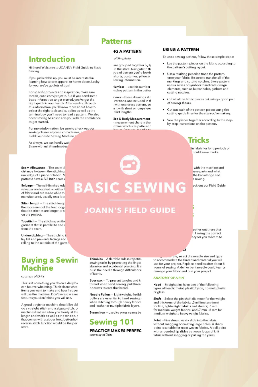 - Joann’s Field Guide to Basic Sewing: Master the foundational skills, tools, and techniques necessary for sewing.