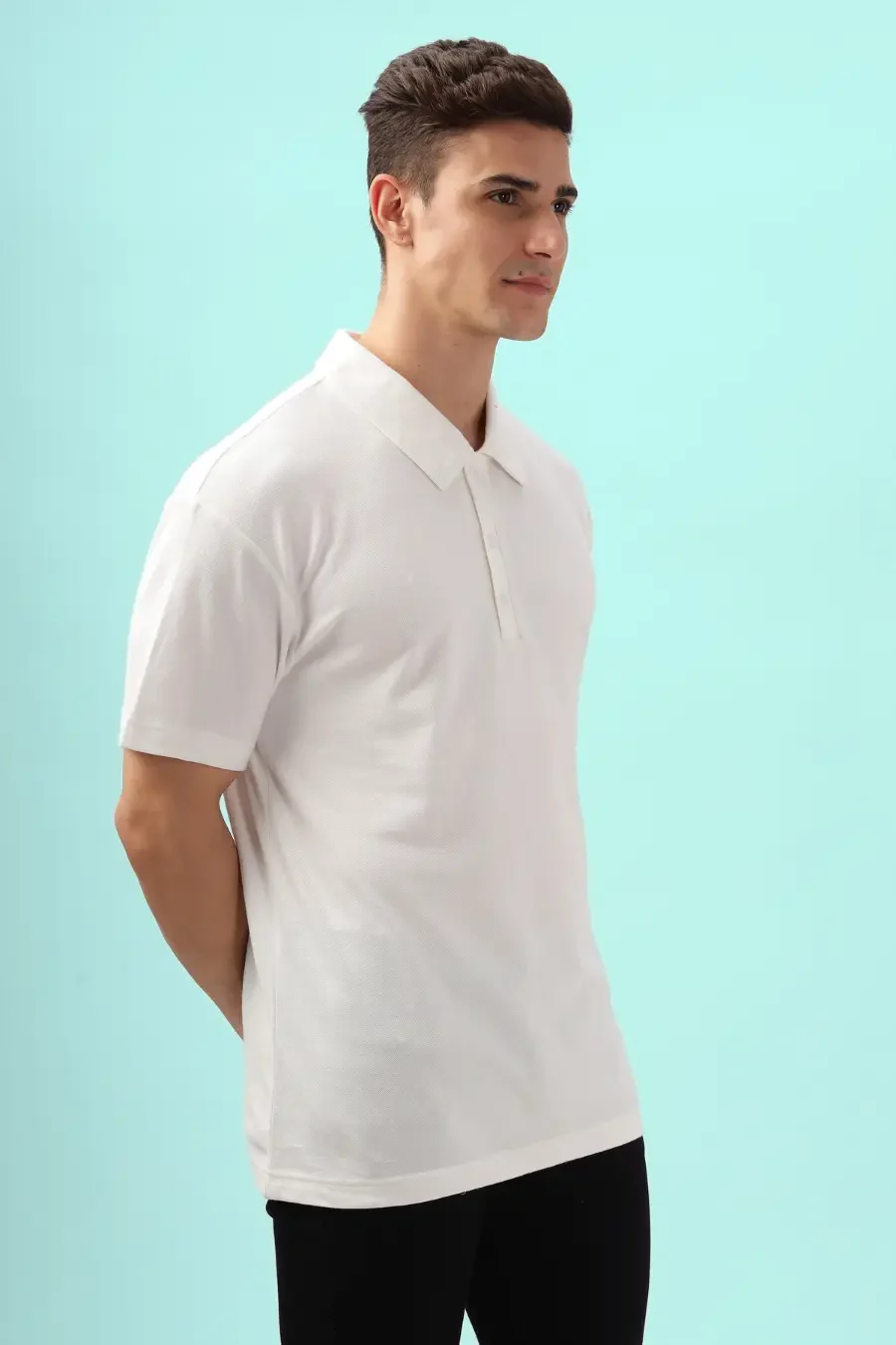 This polo shirt is designed with a structured collar and a neatly finished three-button placket, offering a balance of casual ease and polished style. The short sleeves provide a clean and tailored look, while the straight hem ensures a comfortable fit.